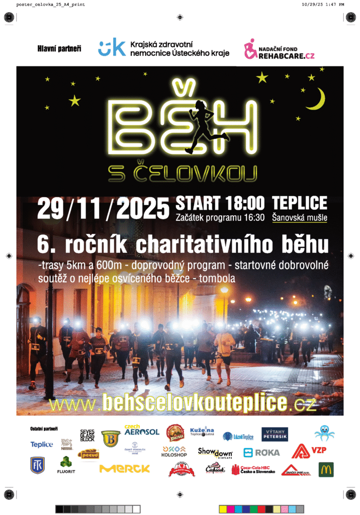 Běh s čelovkou pořádá Centrum pro roztroušenou sklerózu Krajské zdravotní, a. s. – Nemocnice Teplice, o. z., ve spolupráci s Nadačním fondem REHABCARE (https://nadacnifond.rehabcare.cz/).